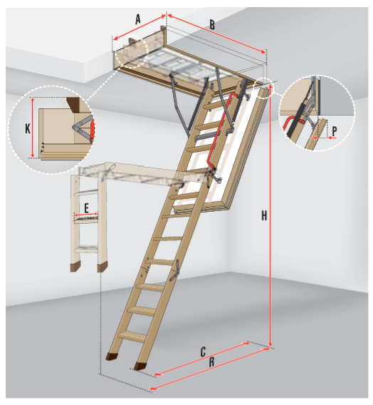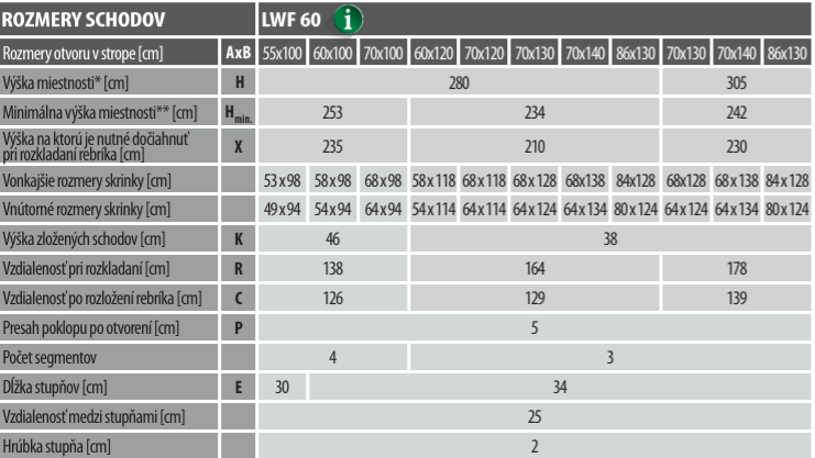 LWF 60 sú moderné protipožiarne podkrovné schody, ktoré spájajú vysokú požiarnu odolnosť a komfort pri prístupe do podkrovia. Vybavené sú ohňovzdorným poklopom s hrúbkou 8,5 cm, trojitým systémom tesnenia a výbornou tepelnou izoláciou (U=0,64 W/m²K, izolácia 7,9 cm). Protišmykové stupne zarovno s bočnicami rebríka, madlo a možnosť doplnkov zvyšujú bezpečnosť a komfort používania. Sú kompletne zmontované a pripravené na rýchlu montáž. Klasifikácia požiarnej odolnosti EI1/EI2 = 60 min podľa normy EN 13501-2. Nosnosť 160 kg, spĺňajú normu EN 14975.