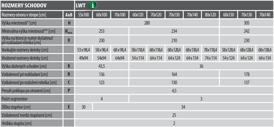 LWL Extra sú kvalitné podkrovné schody s modernou konštrukciou, určené pre náročné priestory s dôrazom na tepelnú izoláciu a komfort používania. Vyznačujú sa bielym poklopom, dvojitým systémom tesnenia, protišmykovými stupňami zarovno s bočnicami rebríka a dvoma madlami pre vyššiu bezpečnosť. Špeciálny odľahčujúci mechanizmus uľahčuje rozkladanie aj skladanie. Vďaka kompletnej montáži sú pripravené na rýchlu inštaláciu do stropu. Tepelnoizolačné vlastnosti zaisťuje 5 cm izolácie a poklop hrubý 5,6 cm. Nosnosť až 160 kg, certifikované podľa EN 14975. 3-ročná záruka.