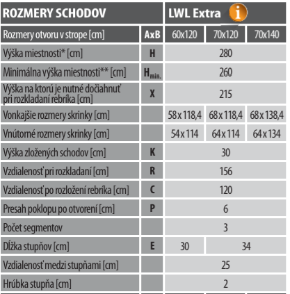 LWL Extra sú kvalitné podkrovné schody s modernou konštrukciou, určené pre náročné priestory s dôrazom na tepelnú izoláciu a komfort používania. Vyznačujú sa bielym poklopom, dvojitým systémom tesnenia, protišmykovými stupňami zarovno s bočnicami rebríka a dvoma madlami pre vyššiu bezpečnosť. Špeciálny odľahčujúci mechanizmus uľahčuje rozkladanie aj skladanie. Vďaka kompletnej montáži sú pripravené na rýchlu inštaláciu do stropu. Tepelnoizolačné vlastnosti zaisťuje 5 cm izolácie a poklop hrubý 5,6 cm. Nosnosť až 160 kg, certifikované podľa EN 14975. 3-ročná záruka.