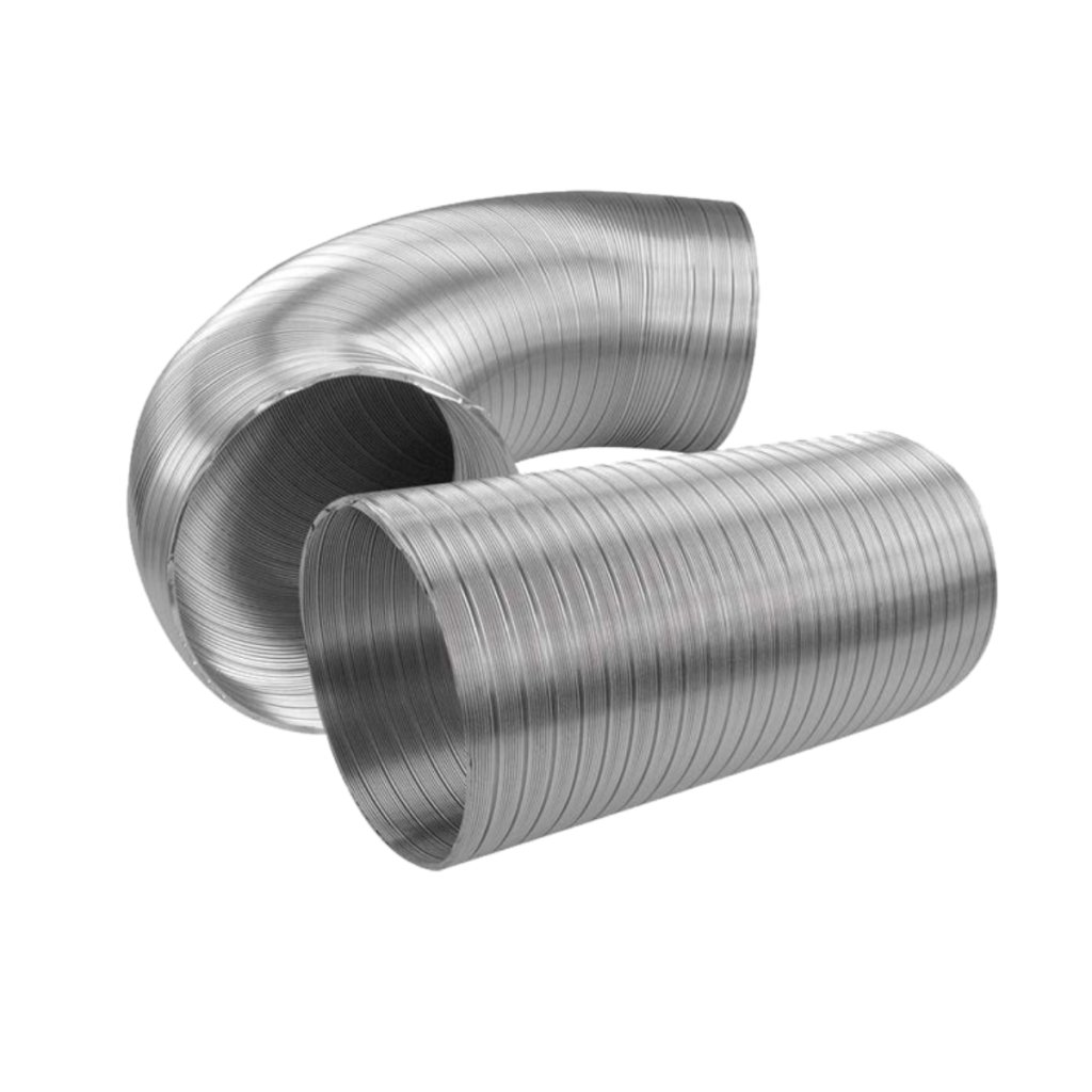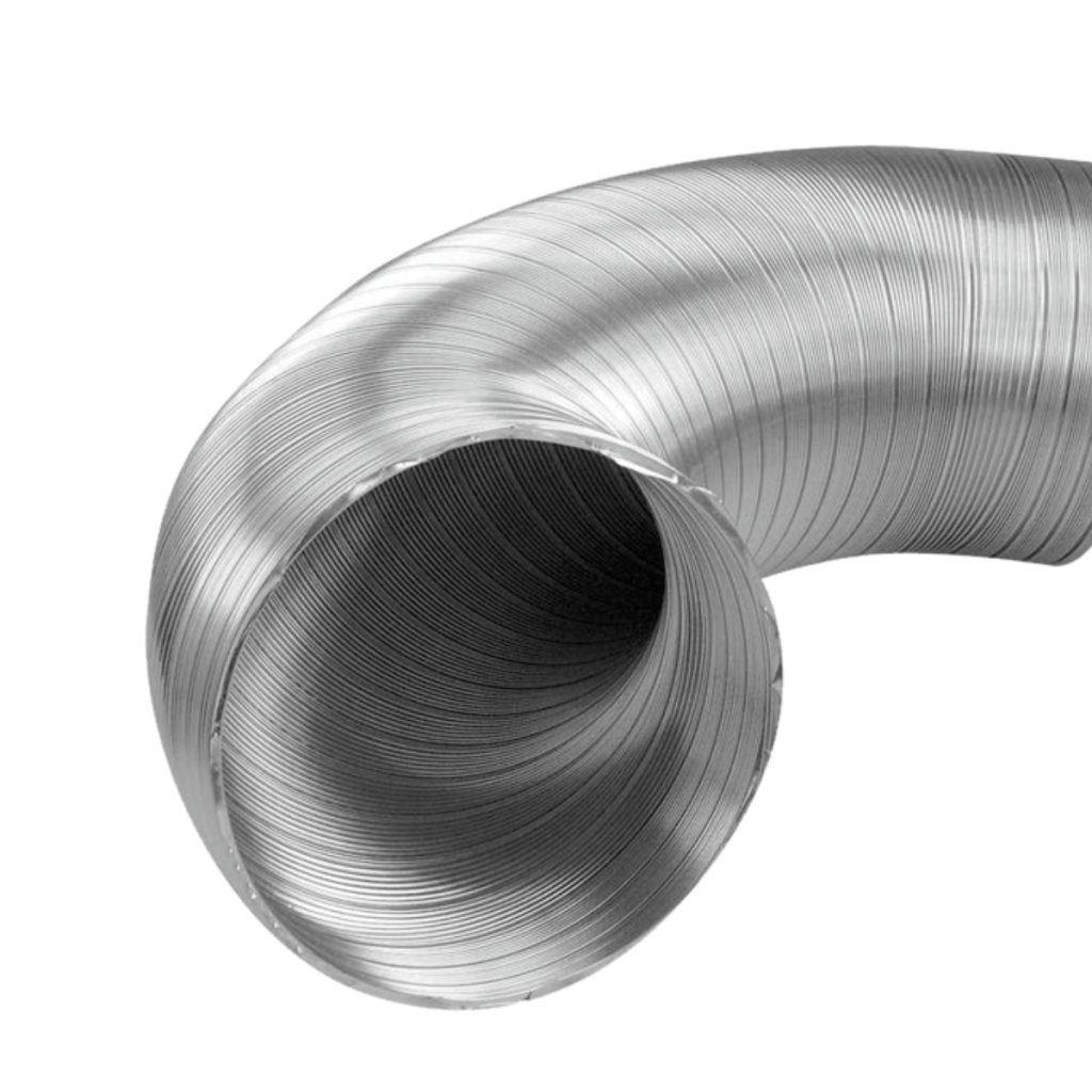 Hliníkové polopružné vzduchové flexo potrubie je flexibilné, roztiahnuteľné a vzduchotesné, vyrobené z 80 mikrónov hrubého hliníkového plechu. Ponúka tepelnú odolnosť od -40°C do 250°C. Inštaluje sa jednoducho pomocou hadicovej spony alebo ALU pásky a možno ho pripevniť napríklad k vetracej mriežke. Potrubie sa dá natiahnuť na maximálnu dĺžku a je kompatibilné s príslušenstvom pre kompletné odsávacie systémy.