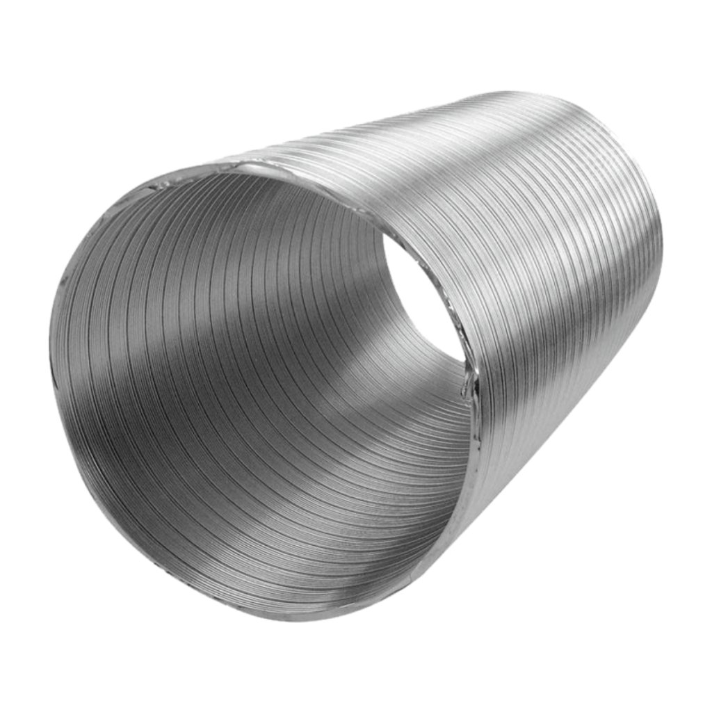 Hliníkové polopružné vzduchové flexo potrubie je flexibilné, roztiahnuteľné a vzduchotesné, vyrobené z 80 mikrónov hrubého hliníkového plechu. Ponúka tepelnú odolnosť od -40°C do 250°C. Inštaluje sa jednoducho pomocou hadicovej spony alebo ALU pásky a možno ho pripevniť napríklad k vetracej mriežke. Potrubie sa dá natiahnuť na maximálnu dĺžku a je kompatibilné s príslušenstvom pre kompletné odsávacie systémy.