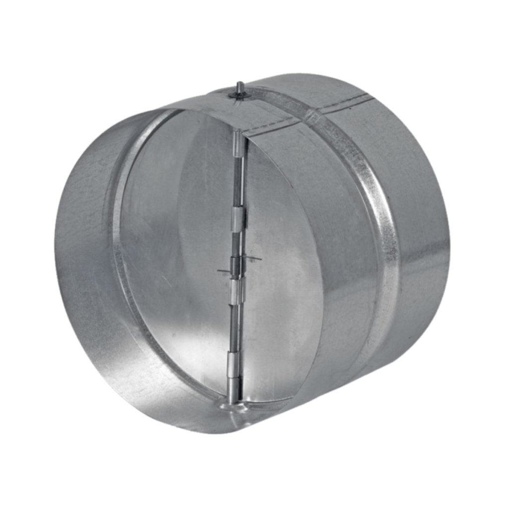 Spätná klapka kovová je určená na zabránenie spätnému ťahu vzduchu v potrubných systémoch. Vyrobená je z kvalitného pozinkovaného oceľového plechu s hrúbkou 0,6 mm, ktorý zabezpečuje vysokú pevnosť, dlhú životnosť a odolnosť voči korózii. Montáž je rýchla a jednoduchá – klapku stačí zasunúť dovnútra flexo potrubia a upevniť hadicovou sponou HS W1 zodpovedajúceho priemeru. Ideálne riešenie pre ventilačné a odsávacie systémy.