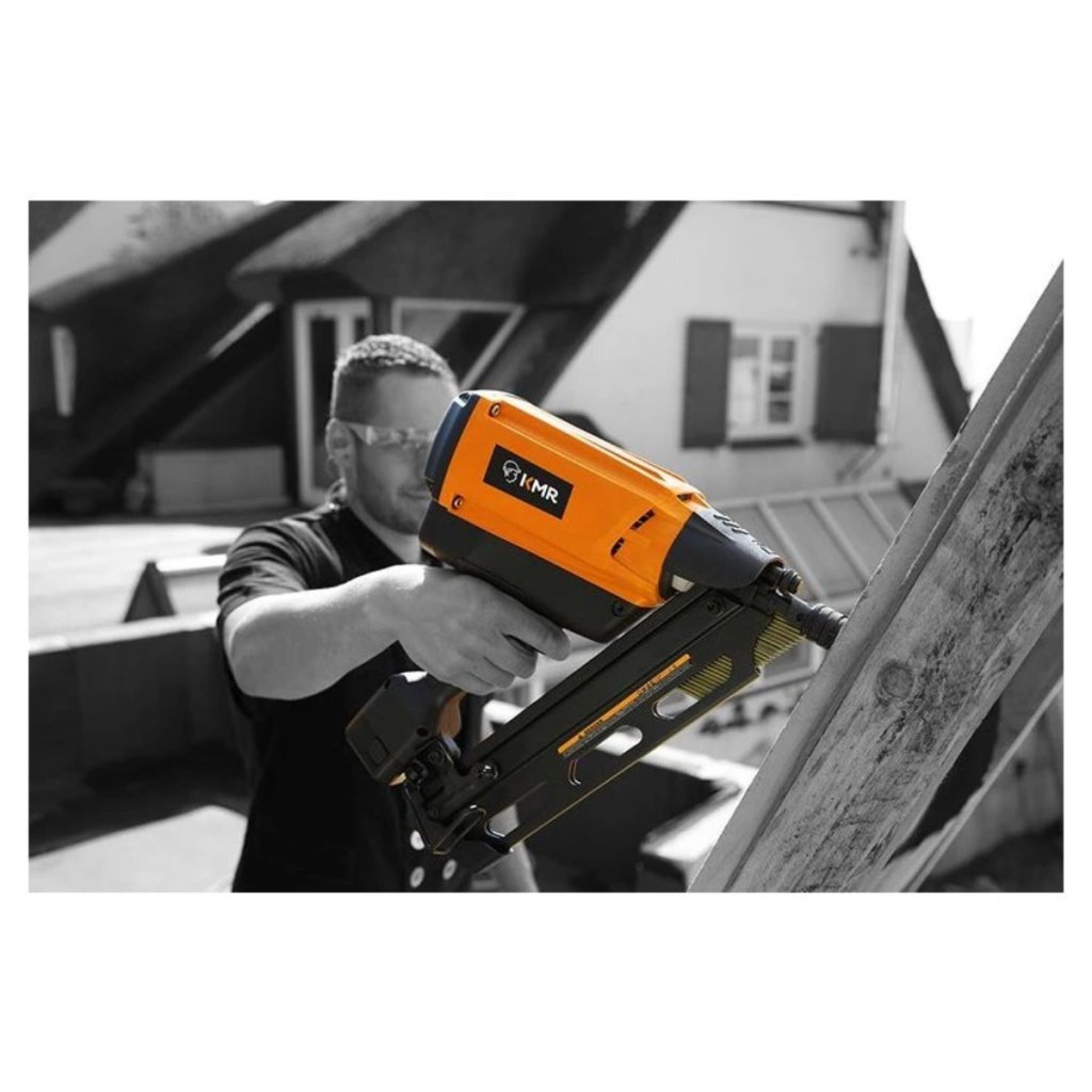 KMR klincovačka D34 / 90 (G641E) je výkonná profesionálna plynová klincovačka určená na náročné stavebné a tesárske aplikácie. Je navrhnutá pre klince D34° s dĺžkou až 90 mm, čo ju predurčuje na rámovanie, montáž drevostavieb, krovy, latovanie striech, debnenie a ďalšie konštrukčné práce.