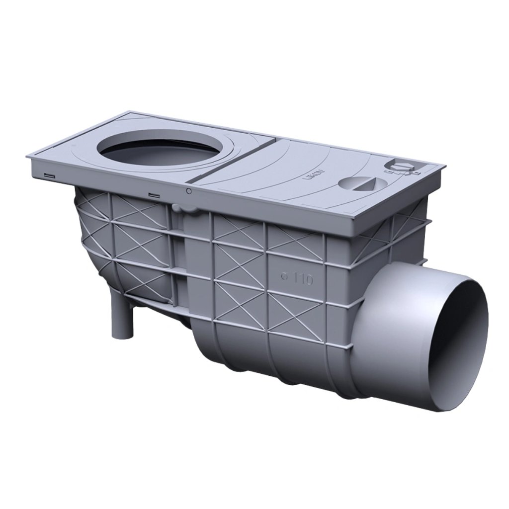 Konštrukcia geigera je vystužená rebrovaním, ktoré zvyšuje jeho mechanickú pevnosť. Odnímateľný kôš umožňuje jednoduché čistenie usadenín a nečistôt. Produkt je zároveň vybavený suchou protizápachovou klapkou, ktorá bráni spätnému úniku nepríjemných pachov z kanalizačného potrubia.