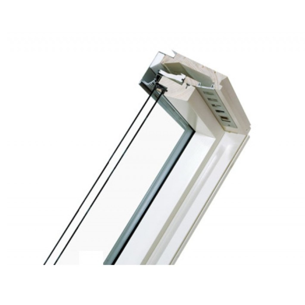 Okno je vybavené super energeticky úsporným trojsklom U5, ktoré výrazne znižuje tepelné straty a prispieva k nižším nákladom na vykurovanie. Automatická ventilačná mriežka V40P zabezpečuje stály prívod čerstvého vzduchu bez potreby úplného otvorenia okna.