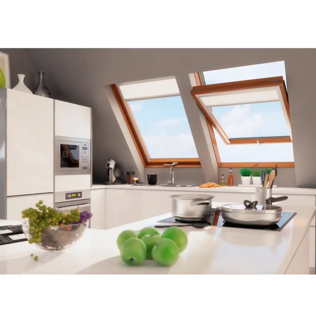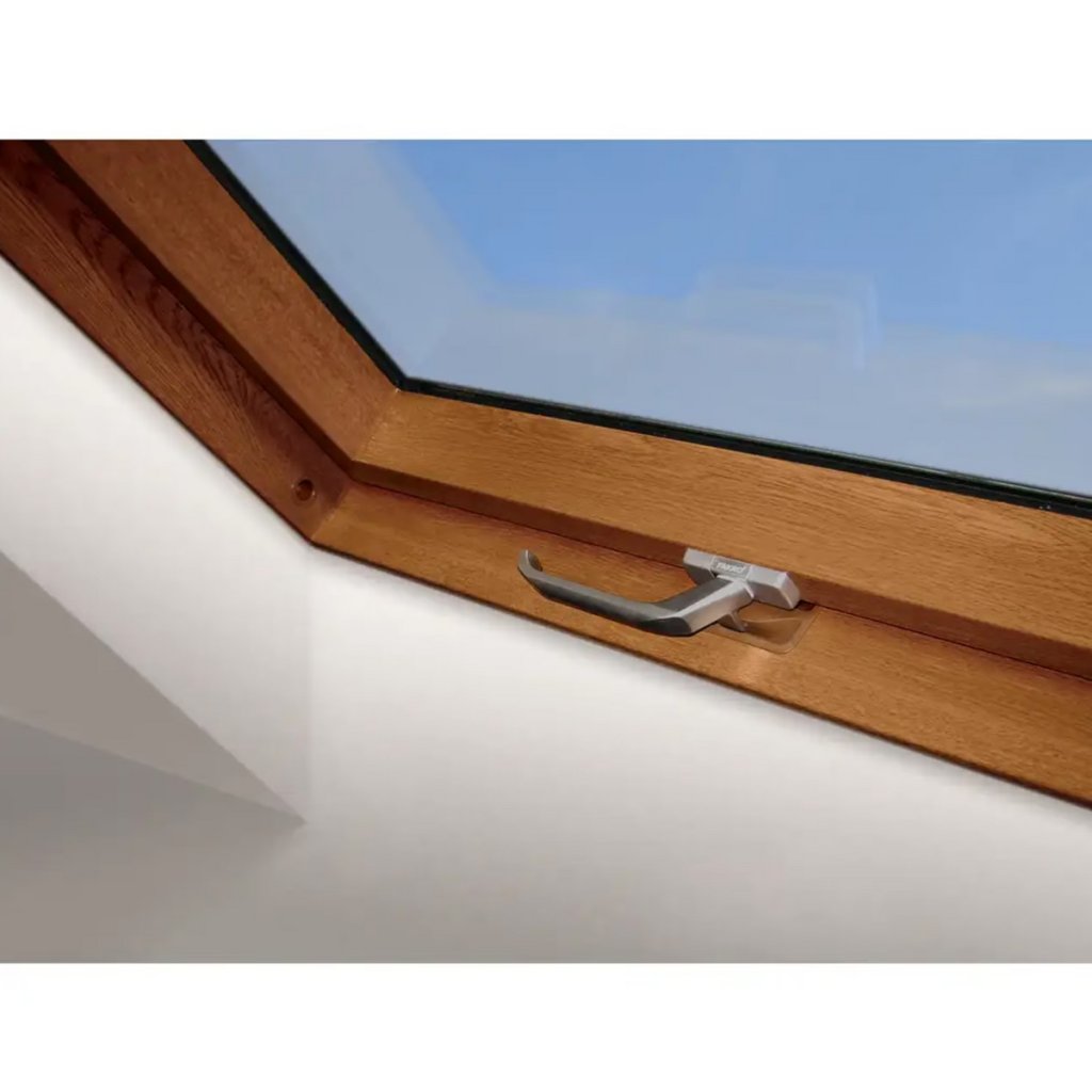 Strešné okno FAKRO PTP-V/GO U4 je kvalitné plastové kyvné strešné okno, ktoré spája odolnosť PVC materiálu s prirodzeným vzhľadom dreva v dekore zlatý dub (GO). Je ideálnou voľbou pre zákazníkov, ktorí chcú dizajnové riešenie bez náročnej údržby.